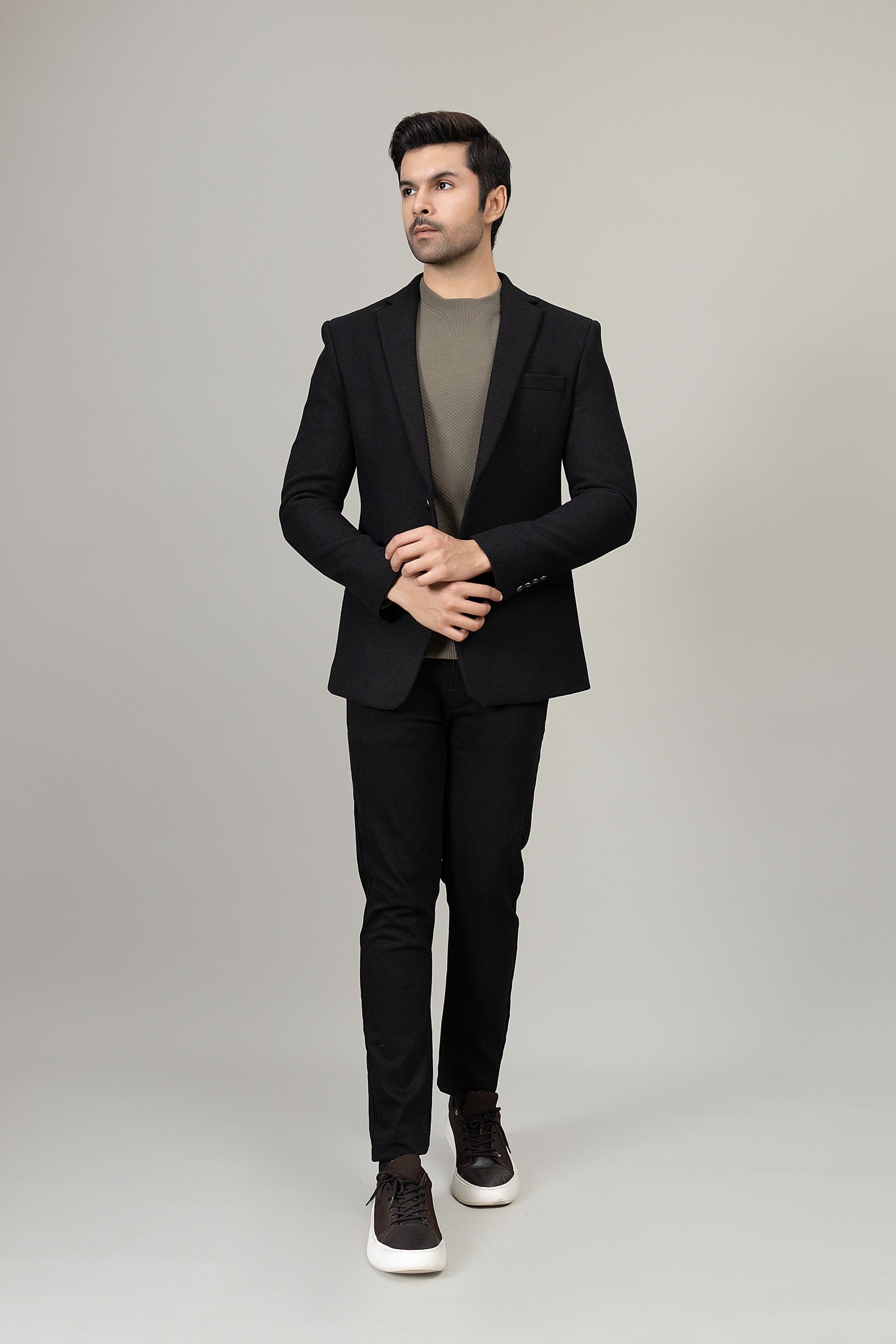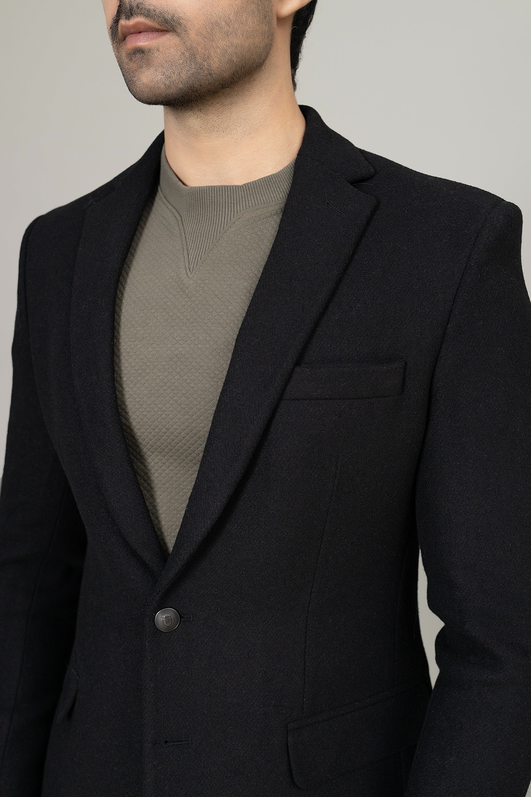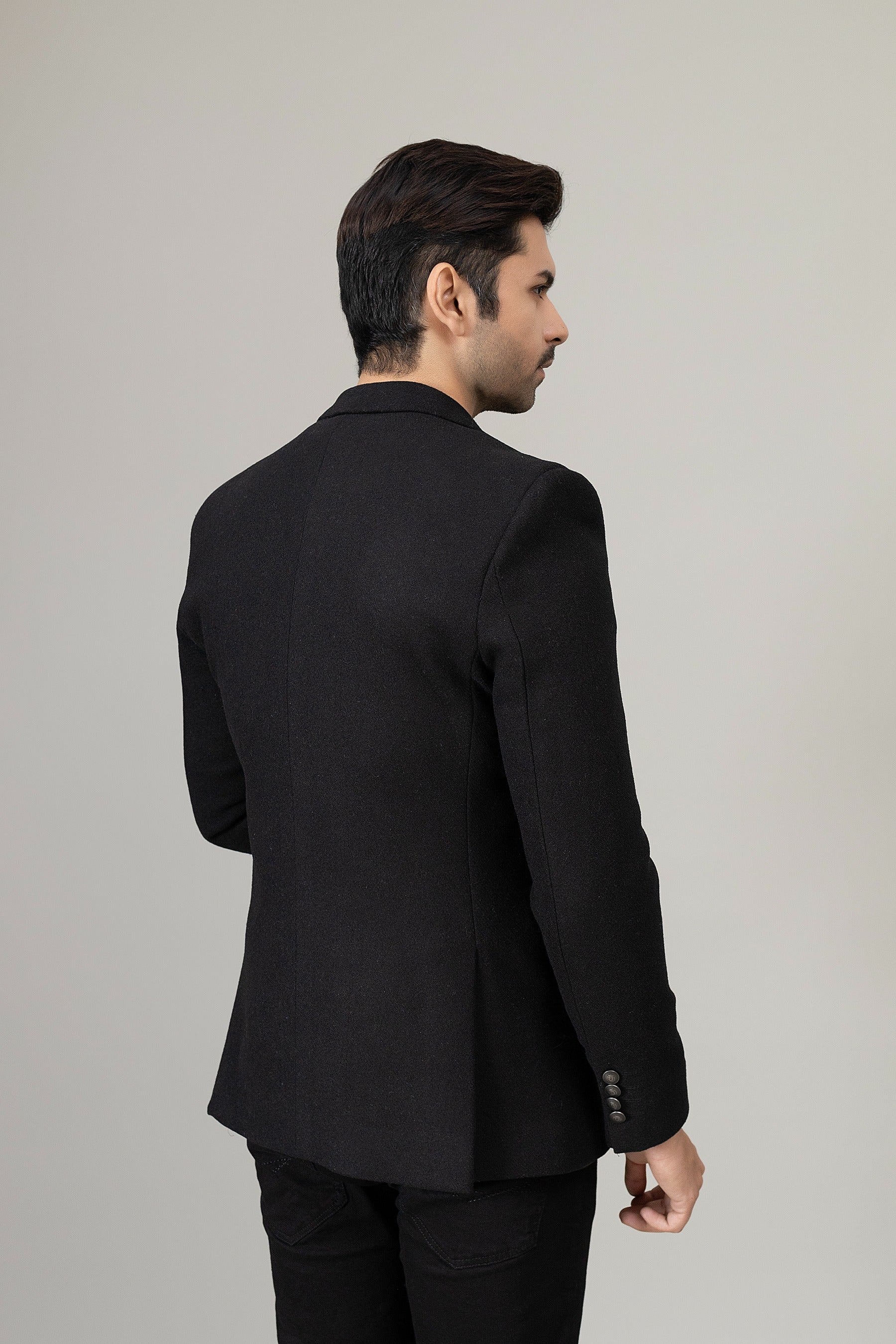 Elevate your style with this black casual coat, sleek, versatile, and perfect for any occasion.